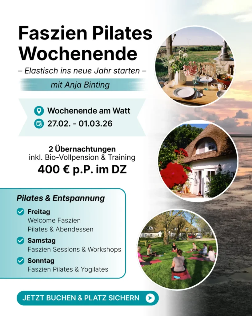 AUSGEZEICHNET Basierend auf 24 Bewertungen Gepostet auf Manuela KörtkeTrustindex überprüft, ob die Originalquelle der Bewertung Google ist. Ich komme schon viele Jahre zu Anja Binting in die move lounge zum Pilates-Training. Das Angebot eines Pilateswochenende auf dem Ferienhof Greggersen hat mich angesprochen und so habe ich es gebucht. Mit hat es richtig gut getan. Anja leitet ihre Stunden mit viel Freude, Engagement und Aufmerksamkeit, dass man sich sofort sicher und angenommen fühlt. Ihre Korrekturen und Erklärungen waren für mich extrem hilfreich. Es war schön, für viele Dinge ( wie zum Beispiel Korrekturen, Erklärungen und Erläuterungen zu den Faszien)einfach mal mehr Zeit zu haben. Die Verpflegung durch den Ferienhof Greggersen ( besonders durch Anja Greggersen) war hervorragend – frisch, lecker und gefühlt mit viel Liebe gemacht. Sauna, Massage und das Gesichtstraining gegen Falten und Co. haben das Wochenende perfekt ergänzt. Toll war auch die Gruppenatmosphäre. Freundlich, lustig, offen und unkompliziert. Man war sofort dabei und es fühlte sich so an, als wenn man sich schon länger kennt. Für mich war es ein herrlich wohltuendes Wochenende. Danke, Anja, für diese besondere Erfahrung und schön, dass es dich und dein Training gibt.Gepostet auf Michel SeesemannTrustindex überprüft, ob die Originalquelle der Bewertung Google ist. Pilates Event Wochenende – Zeit für dich im November 2025 Das Pilates Event Wochenende – Zeit für dich bei Anja war von Anfang bis Ende eine wunderbare Erfahrung. Besonders hervorheben möchte ich die super Rundumbetreuung, durch die ich mich jederzeit gut aufgehoben gefühlt habe. Anja schafft mit ihrer warmen, klaren und professionellen Art eine fürsorgliche Begleitung, die einen geschützten Rahmen bietet, in dem Lernen und persönliches Wachstum ganz leichtfallen. Großartig war auch die individuelle Korrektur und Unterstützung, die jede Teilnehmerin erhalten hat. Anja nimmt sich für jede Frau Zeit und hat ein feines Gespür dafür, wo sie mit ihrer Hilfe ansetzen kann. Dadurch konnte ich persönlich enorm profitieren. Die kleine Gruppengröße hat zu einer sehr intensiven und angenehmen Atmosphäre beigetragen. Die Gruppe war zudem sehr homogen, was den Austausch und das gemeinsame Arbeiten besonders harmonisch machte. Die abwechslungsreiche Gestaltung des Wochenendes sorgte dafür, dass es nie langweilig wurde und die Stunden wie im Flug vergingen. Besonders schön war für mich, mit so lieben und interessanten Frauen zusammenzukommen. Jede einzelne brachte ihre eigene Energie und Geschichte mit, was das Wochenende unglaublich bereichernd gemacht hat. Alles in allem war das Pilates Event Wochenende – Zeit für dich unter der einfühlsamen und kompetenten Leitung von Anja ein rundum gelungenes Erlebnis – absolut empfehlenswert! Liebe Grüße MarenGepostet auf Josie LiTrustindex überprüft, ob die Originalquelle der Bewertung Google ist. Außerhalb des Studiobetriebs habe ich mit Anja und in einer tollen Frauengruppe ein ganz besonderes Pilates Wochenende genossenl. Wir haben ein ganz intensiveses und individuelles, ganz besonderes Training erlebt. Ergebnis: Ein super Körpergefühl!! und tolle Hilfe um mir selbst immer wieder etwas gutes zu tun. Unterkunft und Verpflegung auf dem Ferienhof Greggersen in Schwackendorf waren erstklassig. Sauna und Massage konnten wir auch nutzen - klasse Angebot! Ich freue mich schon auf das nächste Mal!!Gepostet auf Tanja Schröter-OhrendorfTrustindex überprüft, ob die Originalquelle der Bewertung Google ist. PILATESWOCHENENDE AUF HOF GREGGERSEN: Das Pilateswochenende auf dem Hof Greggersen war ein rundum gelungenes Erlebnis. Die Pilatesstunden mit Anja waren hervorragend aufgebaut, abwechslungsreich und liebevoll angeleitet. Man spürt in jeder Minute, dass Anja Pilates lebt, ihre Leidenschaft gefunden hat und diese mit viel Herz und Fachwissen weitergibt. Auch kulinarisch wurden wir verwöhnt: Das frisch gekochte Essen auf dem Hof war köstlich, regional und mit viel Sorgfalt zubereitet. Ein großes Dankeschön an Anja Greggersen für diese liebevolle Rundum-Betreuung. Ein weiteres Highlight war die informative Hofführung mit Wilhelm, die spannende Einblicke in den Hofalltag bot. Abgerundet wurde das Wochenende durch Massagen, Sauna und eine Einführung ins Gesichtstraining – ein echtes Wohlfühlpaket, das keine Wünsche offenließ. Besonders schön war auch die herzliche Atmosphäre in der Gruppe. Viele nette Mädels, ein offener Austausch und gemeinsames Beisammensein haben das Wochenende noch wertvoller gemacht. Ein echtes Rundum-sorglos-Paket. Danke, liebe Anja, für diese tolle Zeit und die wunderbare Erfahrung!Gepostet auf Stefan GroßTrustindex überprüft, ob die Originalquelle der Bewertung Google ist. TRX Training, für mich eine neue Erfahrung, die ich in der Türkei im Blue Waters Club machen durfte. Hier hat Markus ein hervorragendes Training, egal ob für Anfänger oder für Fortgeschrittene, durchgeführt. Die Vielzahl der Übungen und Trainingsmöglichkeiten für alle Muskelgruppen war sehr beeindruckend. Mit viel Herzblut zum Sport, Charm und seiner lockeren Art hat Markus jedes Training wunderbar gestaltet. Ich kann es einfach nur weiter empfehlen. 🙂Gepostet auf Joelle WagnerTrustindex überprüft, ob die Originalquelle der Bewertung Google ist. Aktivurlaub vom Feinsten mit Anja und Markus! Im Blue Waters konnten wir bedenkenlos das hervorragende Essen genießen – begleitet von Anja und Markus von der Movelounge. Besonders das Pilates- und TRX-Event 2025, für das wir extra und sehr gern angereist sind, war ein echtes Highlight. Vielen Dank für die großartige Betreuung und das inspirierende Training! Wir kommen gerne wieder! Joēlle und AlexGepostet auf Claudia KrennTrustindex überprüft, ob die Originalquelle der Bewertung Google ist. Vielen Dank nochmal für Euer super tolles TRX/Pilates Event Im Blue Waters Club in der Türkei. Es war so unglaubli